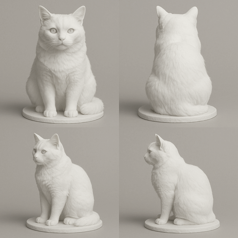 Capturamos con dedicación cada rasgo, gesto y detalle de tu compañero peludo para crear una figura 3D única y emotiva. Desde su mirada hasta su postura característica, todo se traduce en una pieza personalizada llena de cariño y realismo.